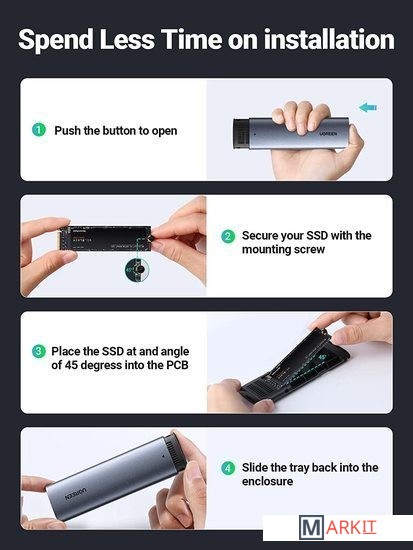 Markit » Боксы для накопителей » Бокс для накопителей M.2 Ugreen CM400 90264